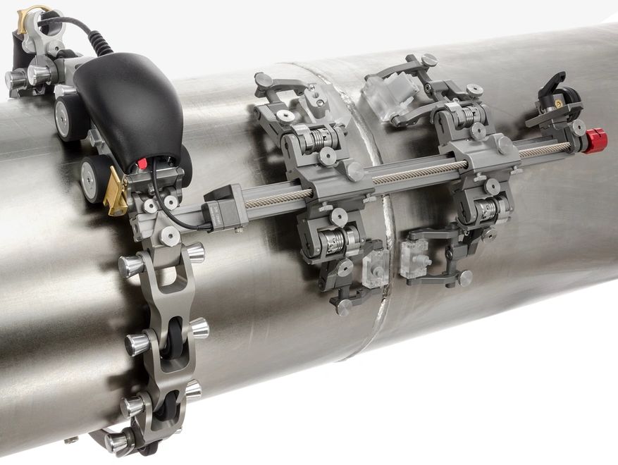 We offer phased array and conventional ultrasonic testing of small diameter butt welds. We utilize a fully encoded pipe weld scanner to achieve this which allows us to generate a permanent record of the scan for future reference. The scanner can be used on pipe diameters up to 1-3" inch .